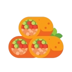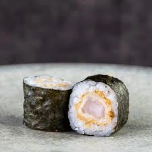 Alga envolvida com arroz, recheada com camarão e creme cheese, empanada com farinha panko |